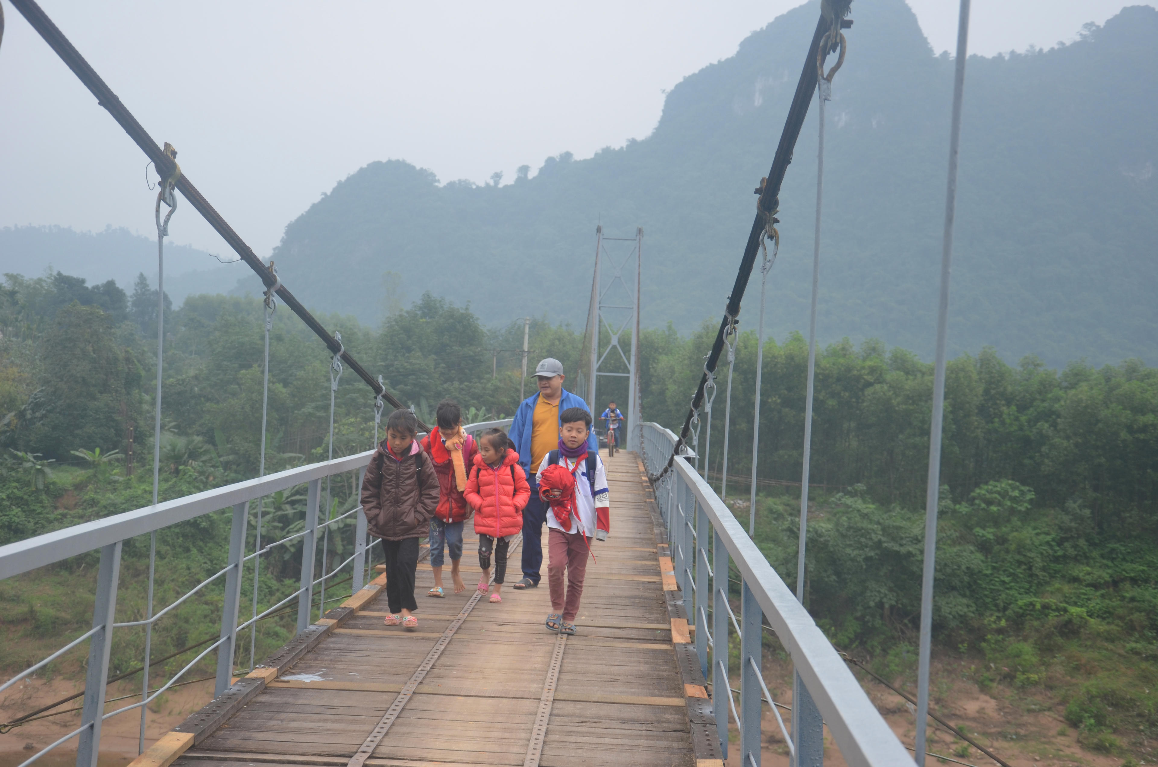 Điều đáng nói, cây cầu treo này lại là tuyến giao thông duy nhất nối liền thôn Kim Tiến đến khu vực trung tâm xã và các điểm trường. Do vậy, dù đã hết hạn sử dụng nhưng mỗi ngày cây cầu này vẫn phải “gồng mình” chịu hàng nghìn lượt qua lại, đặc biệt là giờ cao điểm sau khi học sinh tan trường và người dân trong thôn đi làm về.