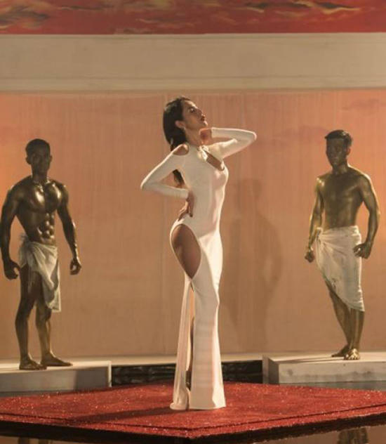 Chiếc đầm dạ hội với quá nhiều khoảng hở này đã giúp Ngọc Trinh gây ấn tượng manh trong một sự kiện tại Hàn Quốc. Bất chấp thời tiết lạnh, Ngọc Trinh vẫn "đánh bại" các mỹ nhân xứ kim chi vì độ hở bạo. Tuy nhiên theo Cục nghệ thuật biểu diễn do Ngọc Trinh sang nước ngoài nhận giải, không biểu diễn nên khó phạt "nữ hoàng nội y".