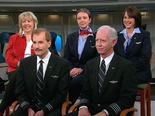 Máy bay lúc đó có 150 hành khách và 5 nhân viên phi hành đoàn, gồm Cơ trưởng của chuyến bay: Chesley B. Sullenberger III, 57 tuổi. Ông là một cựu đại úy phi công của Không lực Hoa Kỳ, phục vụ với vai trò phi công máy bay chiến đấu và từng lái F-4 Phantom II từ năm 1973 đến năm 1980.