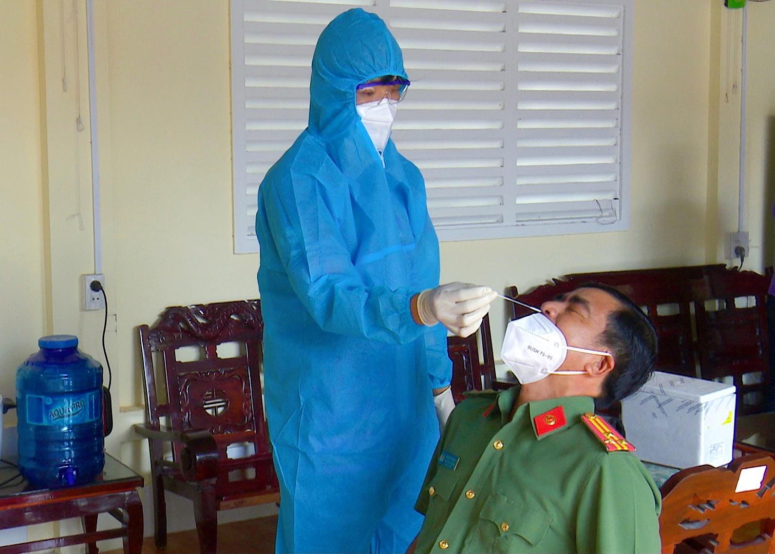 Các y, bác sĩ Bệnh xá Công an tỉnh tiến hành test kháng nguyên COVID-19 cho cán bộ, chiến sĩ Công an các đơn vị, địa phương. |