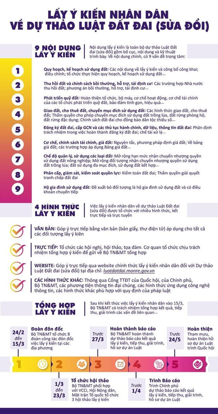Nội dung lấy ý kiến dự thảo Luật Đất đai (sửa đổi). Đồ họa Bộ TNMT