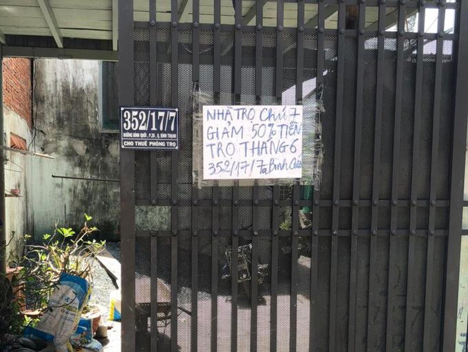 Không chỉ riêng gia đình ông Tới, ở con hẻm 352/17 này, nhiều chủ phòng trọ khác cũng giảm tiền, chia sẻ với người thuê trọ. Gia đình chị Nguyễn Thị Kim Châu, 32 tuổi cũng dán tấm bảng thông báo giảm tiền trước cửa dãy trọ như đợt giãn cách xã hội năm ngoái.
