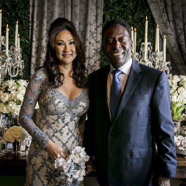 Vua bóng đá và thương gia gốc Nhật tổ chức đám cưới năm 2016 sau nhiều lần trì hoãn vì sức khỏe của Pele. Ảnh:Twitter. |