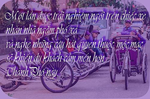 “Đây là lần đầu tiên tôi ngồi xích lô để đi dạo, vì đi du lịch nên cũng sợ bị chặt chém nhưng thật sự rất bất ngờ vì những bác đạp xích lô ở đây rất vui vẻ bắt chuyện, nhiệt tình chỉ dẫn và đưa tôi cùng người nhà đến những nơi có thể mua sắm đồ lưu niệm, hơn nữa cái mức giá cho phương tiện này cũng rất rẻ. Tôi rất hài lòng và chắc chắn sẽ đi xích lô nhiều hơn nữa.” – một du khách thành phố Hồ Chí Minh vui vẻ cho biết.