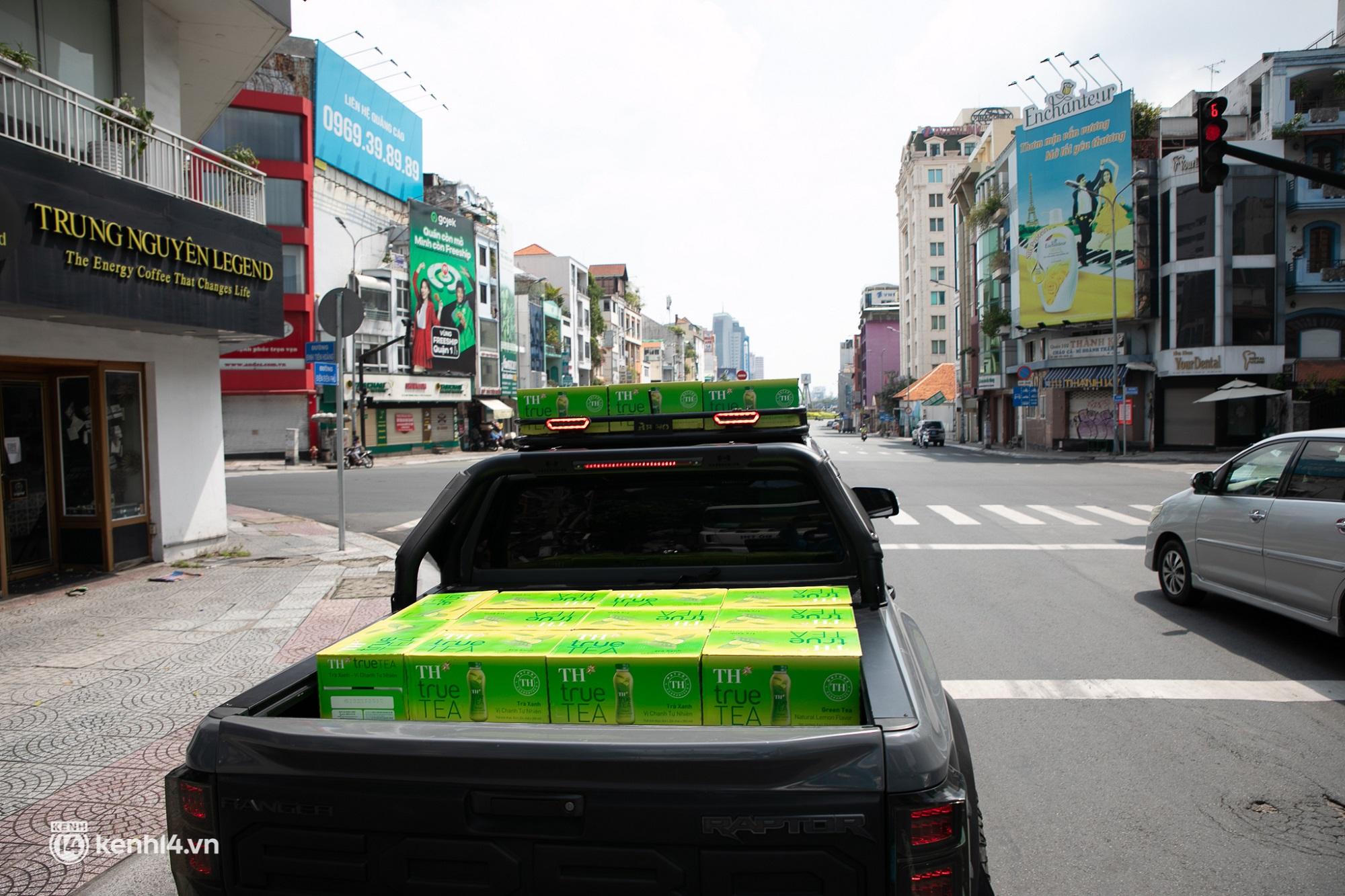 Trong buổi sáng, hàng chục chuyến xe đã toả đi khắp các quận, huyện tại TP Hồ Chí Minh. Chúng tôi trực tiếp theo xe bán tải của anh Huỳnh Ngô Đồng chở 60 thùng trà xanh tự nhiên đến hai bệnh viện ở Q.Bình Thạnh.
