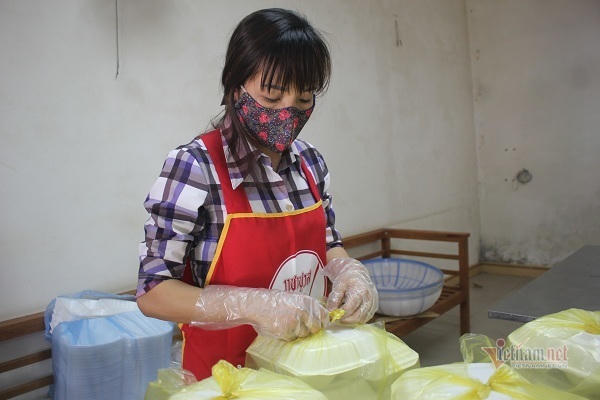 | Mặc dù buổi tối cô Vân tham gia dạy trực tuyến cho học sinh nhưng ban ngày vẫn tranh thủ đến phụ nấu ăn cho người cách ly |