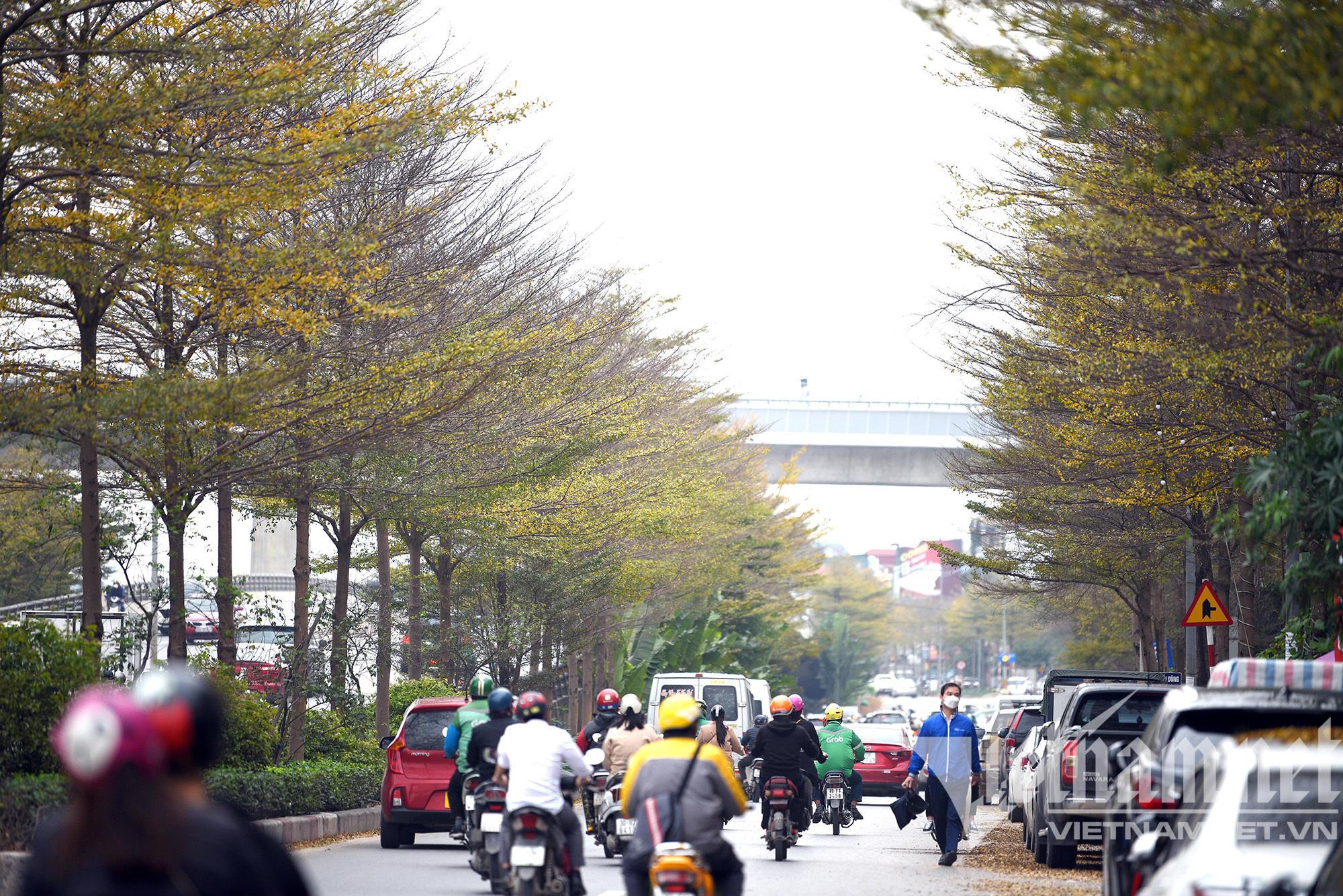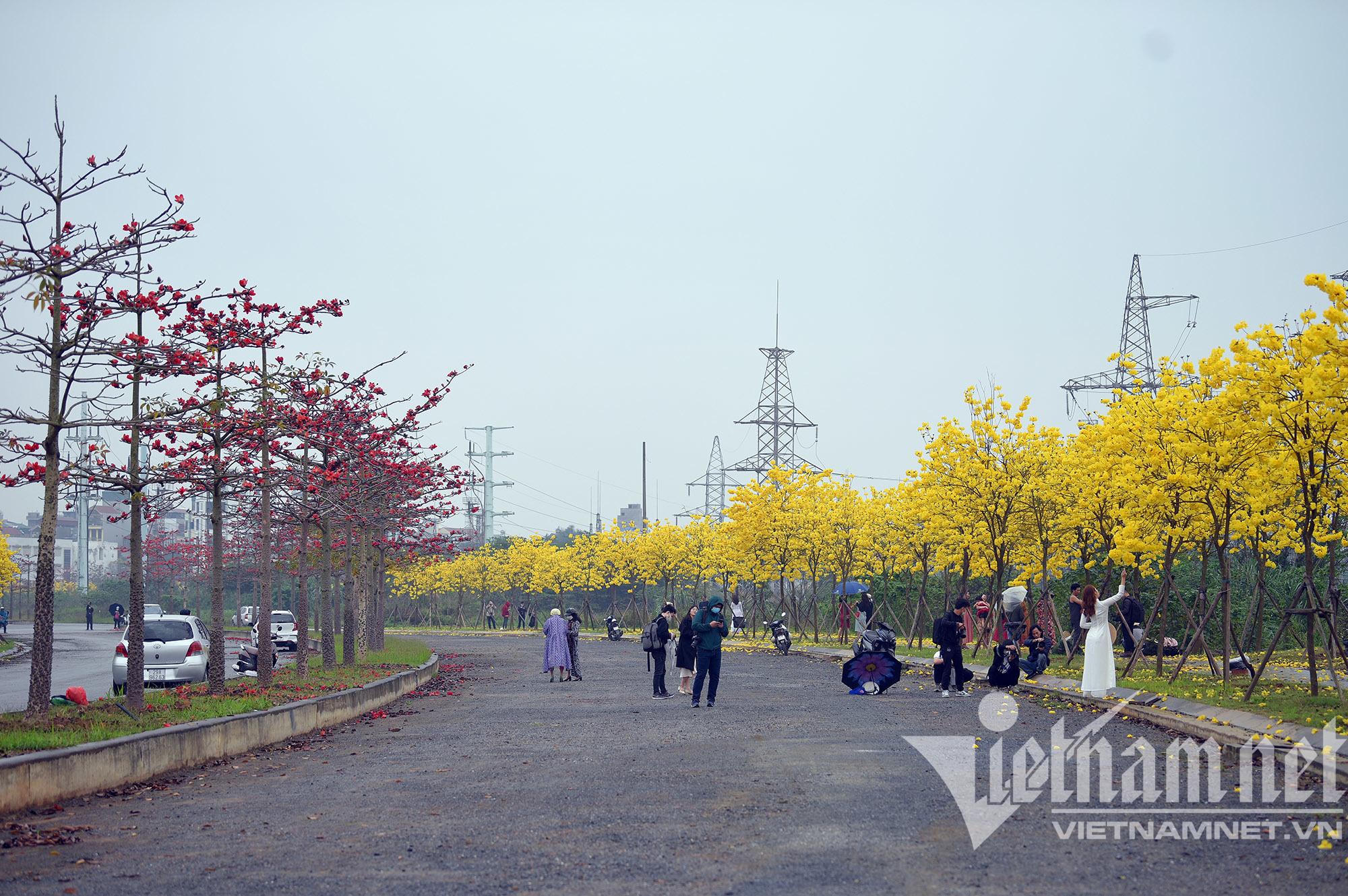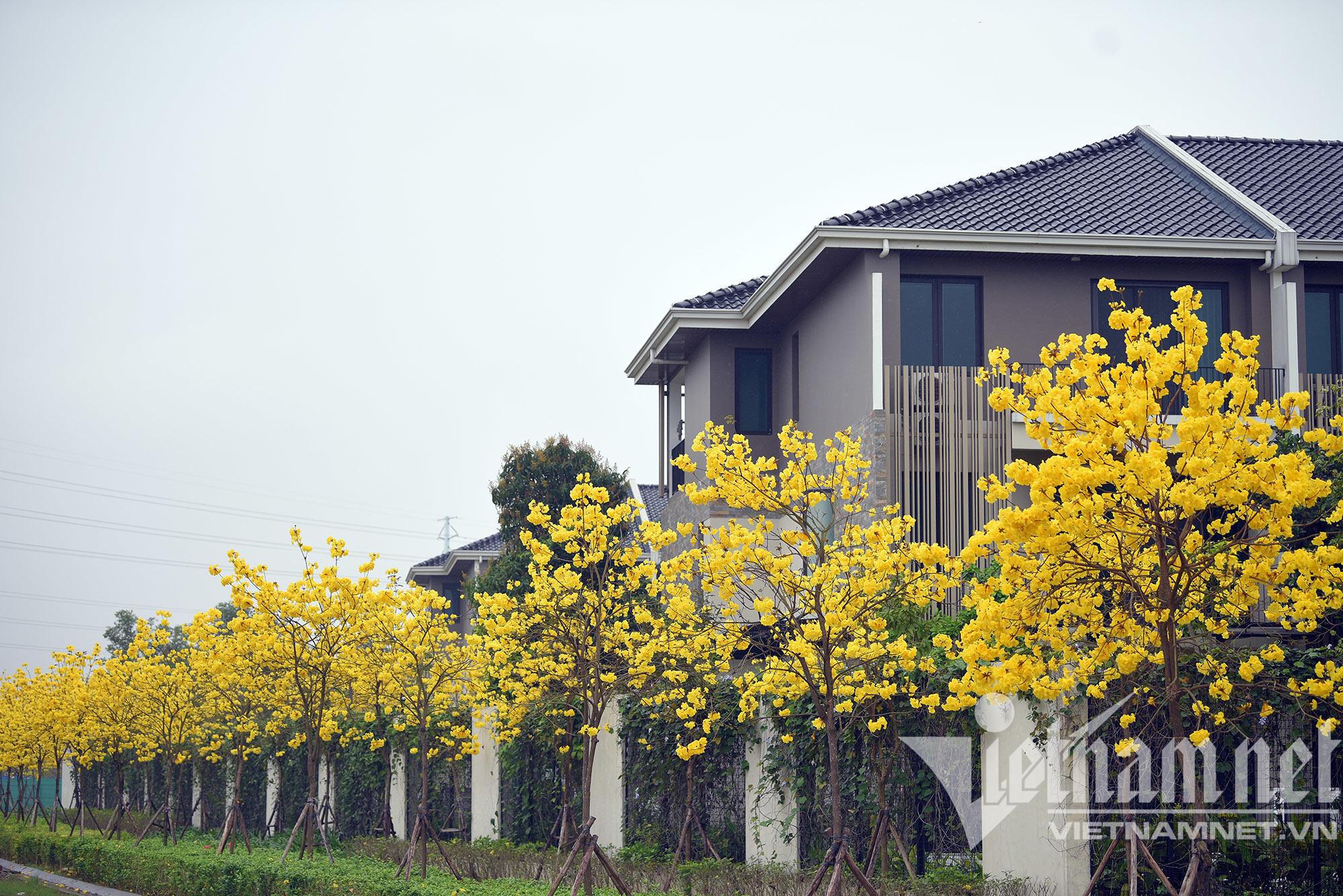 Hàng cây phong linh vàng nằm trên con đường dài gần một km của khu đô thị ở phường La Khê, quận Hà Đông, Hà Nội