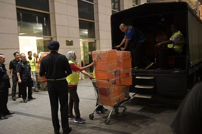 Trong quá trình điều tra, cảnh sát Malaysia đã tiến hành khám xét nhiều tài sản của ông Najib. Họ đã thu nhiều xe tải vật dụng được cho là đã được mua bán, tích lũy từ nguồn tiền của 1MDB. Trong đó có 284 thùng túi xách hàng hiệu, trong đó có những chiếc túi có giá lên đến vài trăm nghìn USD, 72 vali chất đầy tiền mặt cùng nhiều trang sức và đồng hồ đắt tiền.