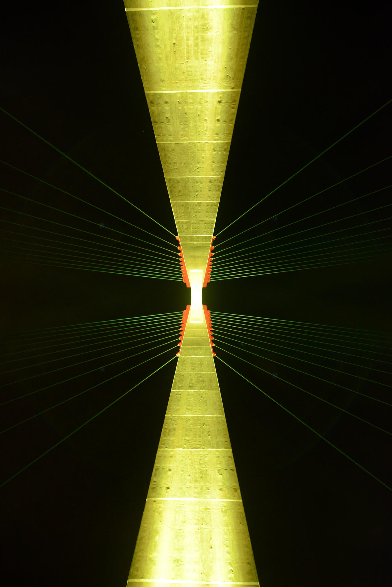 Bắt đầu từ ngày 17/2, sau hơn 2 tháng lắp đặt, công trình chính thức hoàn thiện với tổng chiều dài là 3.755 mét, bao gồm các hạng mục: chiếu sáng trang trí 5 trụ tháp cầu, chiếu sáng mỹ thuật dây văng và hệ thống chiếu sáng mỹ thuật 2 bên thành cầu.