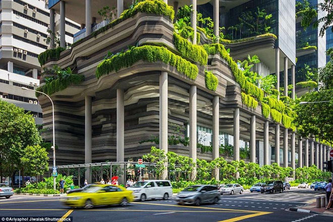 Khung cảnh trở nên nổi bật hơn nhờ thiết kế độc đáo của khách sạn Park Royal ở Singapore. Khách sạn tự hào khi có những khu vườn tầng, những khu lồng chim, cùng một hồ bơi vô cực khổng lồ.