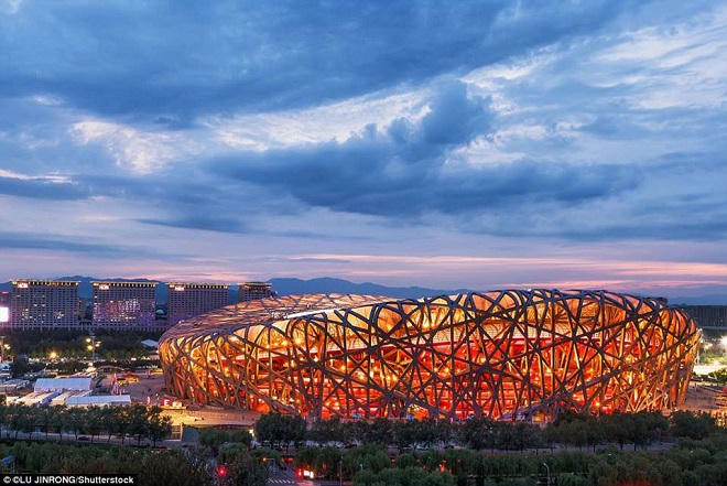 Hình ảnh sân vận động Olympic ở Bắc Kinh, còn gọi là sân vận động Tổ Chim, được xây dựng vào năm 2008. Hiện nay, sân vận động được sử dụng cho các sự kiện thể thao, hòa nhạc, và triển lãm.