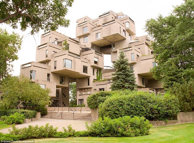 Khu nhà ở Habitat 67 ở Montreal, Canada, được xây dựng theo thiết kế của kiến trúc sư Moshe Safdie người Israel.