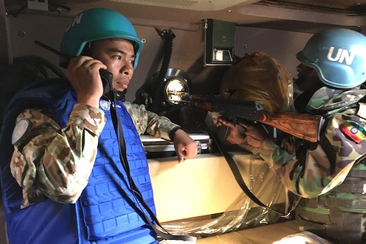 Trung tá Lương Trường Vinh Nhận nhiệm vụ Quan sát viên quân sự (Sỹ quan liên lạc) tại phái bộ Gìn giữ hoà bình Liên Hợp Quốc ở Nam Sudan (UNMISS) từ tháng 6/2019, cho biết, trong mỗi chuyến tuần tra, để đảm bảo an toàn cho các Sỹ quan phái bộ UNMISS sẽ cử lực lượng bảo vệ của tiểu đoàn bộ binh đi cùng họ. Quân số bảo vệ khoảng từ 30 đến 60 người tùy theo tính chất nhiệm vụ và tình hình an ninh. Đi đầu và cuối là xe bọc thép chở quân, ở giữa là xe chở sỹ quan, xe cứu thương.