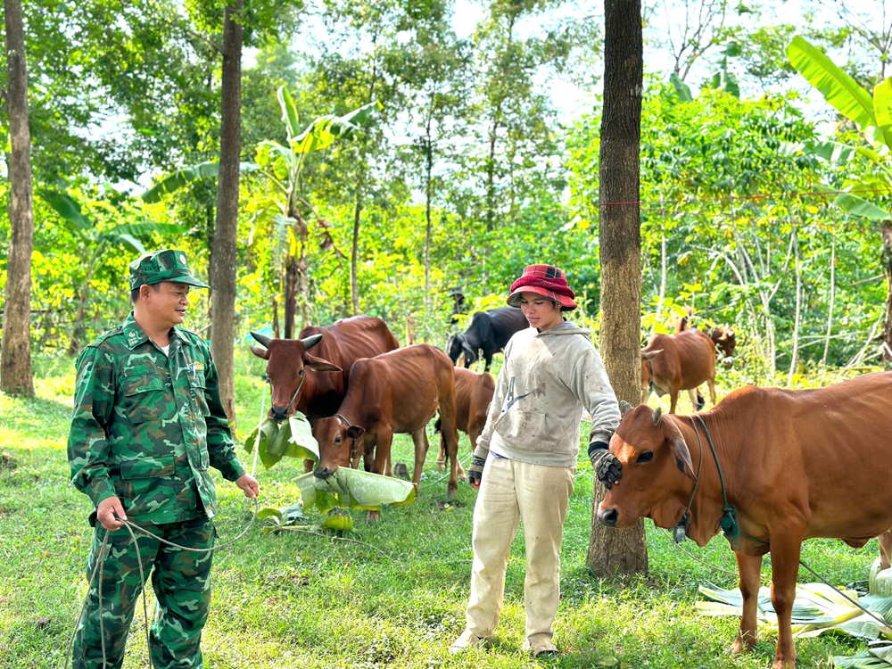 Đồng thời, Đồn hướng dẫn người dân chuyển đổi phương thức sản xuất, hỗ trợ về cây, con giống để các hộ gia đình phát triển kinh tế, nâng cao đời sống. Qua đó góp phần nâng cao nhận thức của các hộ gia đình trong chấp hành pháp luật, tham gia bảo vệ chủ quyền, lãnh thổ an ninh biên giới quốc gia, góp phần cùng địa phương thực hiện tốt công tác xóa đói, giảm nghèo.
