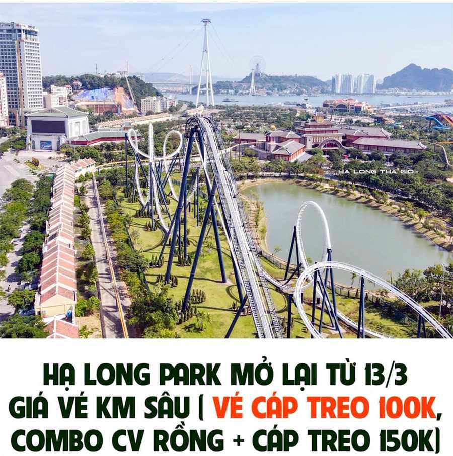 Với Khu vui chơi, giải trí Sun World Hạ Long Park, đơn vị quản lý cũng tung ra gói kích cầu du lịch siêu khuyến mãi như: Miễn phí cho trẻ em cao dưới 1 mét tham quan cáp treo Nữ Hoàng, Công viên Rồng; với người lớn giá cáp treo Nữ Hoàng 100 ngàn đồng/người, Công viên Rồng 100 ngàn đồng/người; vé combo cáp treo Nữ Hoàng + Công viên Rồng chỉ còn 150 ngàn đồng/người. Khu vui chơi, giải trí Sun World Hạ Long Park mở lại phục vụ du khách vào ngày 13/3 và chưa bao giờ giảm giá vé sâu đến vậy.