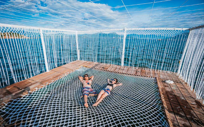 Bạn không cần phải đi Maldives hay những hòn đảo tuyệt đẹp ở Thái Bình Dương mới có thể tận hưởng cảm giác thả mình trên chiếc võng vươn ra giữa biển, đón cơn gió mát lồng lộng thổi từ tứ phía mà nay, ở ngay tại Khánh Hòa, du khách cũng có thể trải nghiệm thú vui độc đáo này.