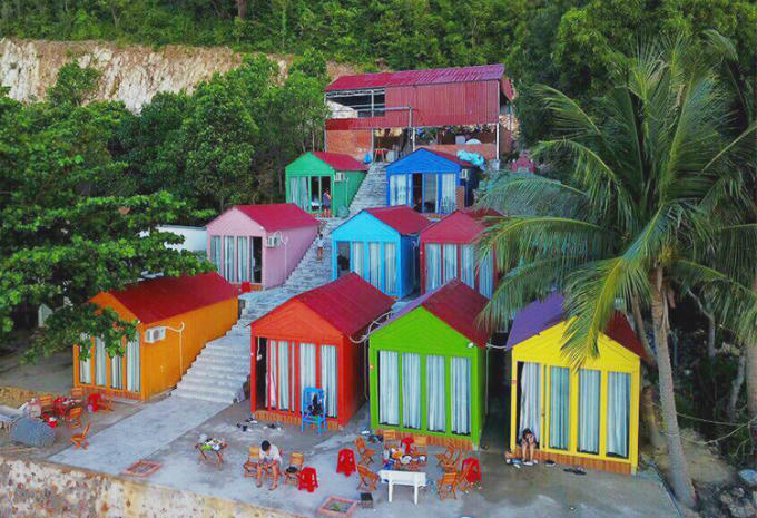 Khu nghỉ có tên là Thảo Thường Camp với tổng cộng 9 căn bungalow và thêm một căn phòng dorm 8 giường thoáng mát. Mỗi căn mang mỗi màu sắc khác nhau, rực rỡ, hòa vào màu xanh của núi rừng và biển. Thêm vào đó, nếu lo lắng rằng khu nghỉ ở đảo thường hoang sơ thì đến đây, hãy tự tin rằng có đầy đủ điện và điều hòa để chống chọi với cái nắng hè. Bạn có thể đặt đồ ăn do nhà chủ nấu hoặc mua đồ về làm tiệc BBQ ngay trước hiên nhà, nhìn thẳng ra biển.
