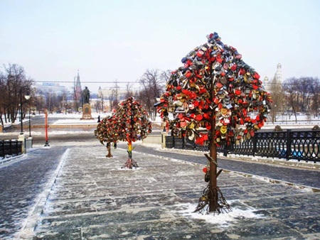 Trên cây cầu đi bộ Tretriakovsky ở thủ đô Matcơva Nga được Chính quyền thành phố đặt “cây tình yêu”. Đây là nơi các cặp tình nhân treo ổ khóa lên trên và ném chìa xuống dòng sông Matcơva. Như vậy sẽ không có người thứ ba mở cửa trái tim người yêu mình được nữa.