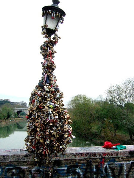 Những chiếc cột đèn trên cây cầu Ponte Milvio ở Rome, Ý là điểm đến hấp dẫn của các cặp tình nhân. Nơi đây chứa đầy kỷ niệm với các ổ khóa tình yêu. Số lượng các khóa treo trên cột đèn ngày một nhiều và đe dọa trực tiếp đến kiến trúc của cây cầu. Chính bởi vậy, Chính quyền thành phố đã cho đặt các dây xích lên cầu để giảm tải gánh nặng cho cột đèn.