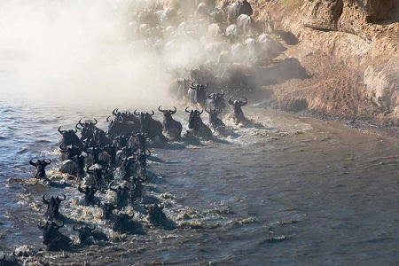 Tháng Tám là thời gian tuyệt vời để có thể chứng kiến những cuộc đại di cư ngoạn mục của nhiều loài động vật hoang dã ấn tượng nhất trên trái đất. Vào thời điểm này hàng năm, đàn ngựa vằn và linh dương đầu bò, số lượng lên đến cả triệu con tụ tập lại với nhau ở khu bảo tồn Masai Mara, Kenya sau cuộc hành trình dài băng qua cánh đồng linh dương Serengeti ở miền bắc Tanzania. Chúng phải cùng nhau vượt qua điểm giao cắt giữa các con sông Mara và Talek, nơi ngự trị của những loài cá sấu hung hãn nhất.