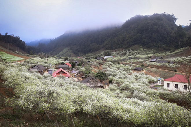 Đến Mộc Châu dịp này du khách sẽ được ngắm thung lũng hoa trắng xóa, từ hoa mơ, hoa mận đến hoa cải hoặc cả những khúc hoa tam giác mạch.