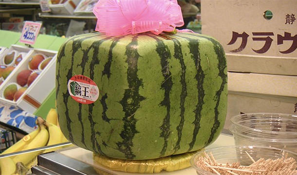Nông dân Nhật tìm tòi và phát triển loại dưa hấu vuông bởi họ cho rằng loại dưa này rất dễ lưu trữ.