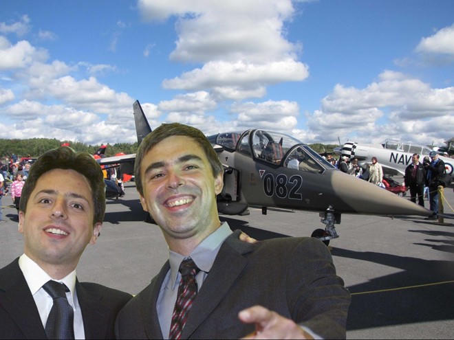 Người đồng sáng lập Google, Larry Page và Sergey Brin, cùng với vị chủ tịch Eric Schmidt sở hữu một bộ sưu tập máy bay gồm 1 chiếc Boeing 757, Boeing 767 và hai chiếc Gulfstream V. Ước tính họ phải chi trả khoảng 1,3 triệu đô mỗi năm để giữ phi đội này tại sân bay liên bang Moffett, thung lũng Silicon. Năm 2008, Page và Brin đã thêm vào bộ sưu tập này một chiếc máy bay chiến đấu Dornier Alpha 1982.