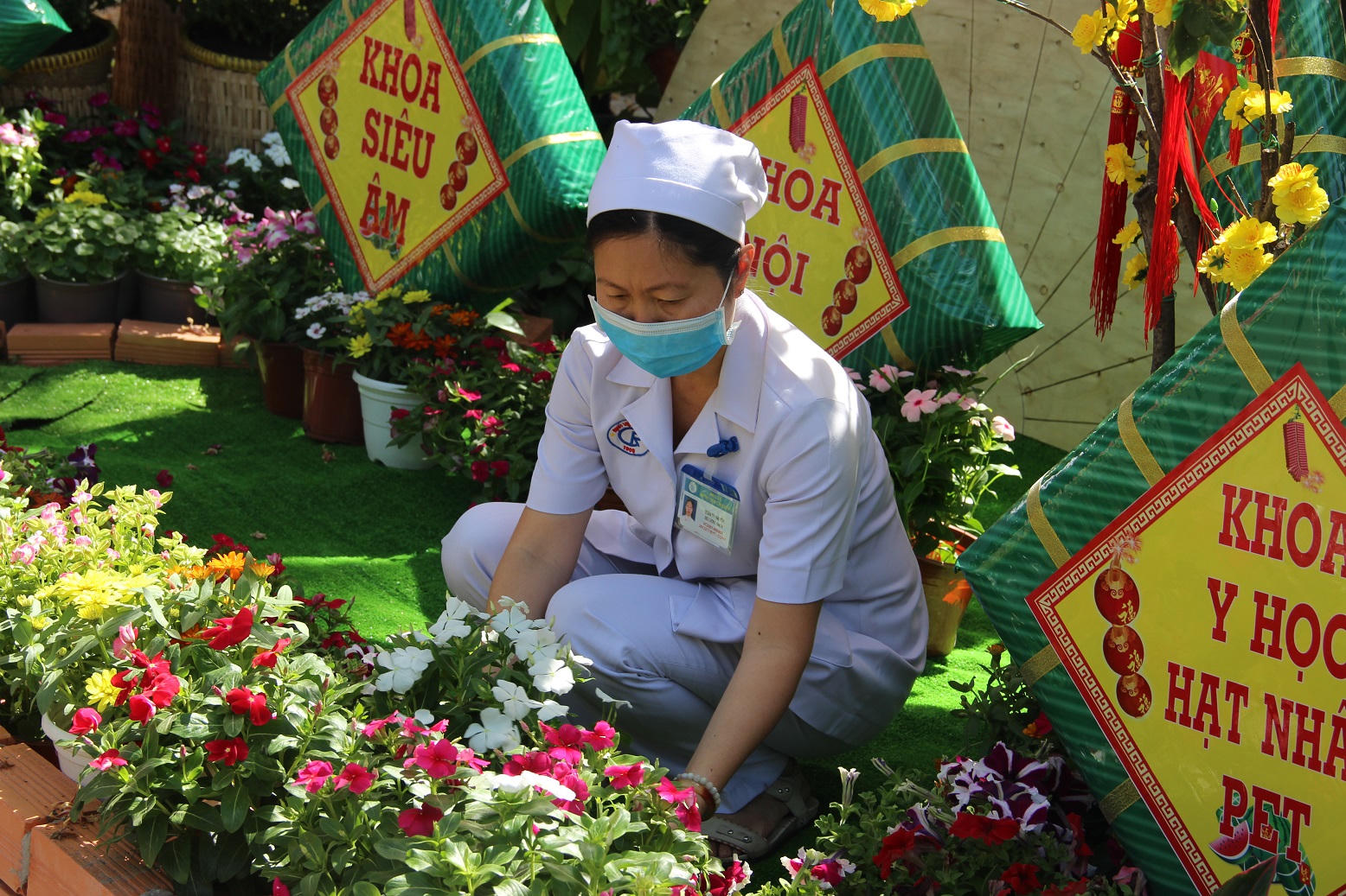 Năm nay, Sài Gòn còn có thêm một đường hoa nữa, lần đầu tiên xuất hiện. Đó là đường hoa “bệnh viện”. Tại Bệnh viện Chợ Rẫy, từ gần 1 tháng trước Tết đã xuất hiện một đường hoa xinh đẹp, trải dài ngay trục cổng chính vào bệnh viện, do chính bác sĩ, cán bộ cùng bệnh nhân bệnh viên tham gia góp tay làm. Đường hoa gồm 30 tiểu cảnh, mỗi tiểu cảnh do một phòng ban thực hiện, cũng có hoa đủ màu khoe sắc, có bánh chưng, dưa hấu…