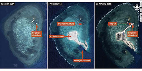 Trung Quốc đang xây dựng những hòn đảo mới và mở rộng những đảo, bãi đá hiện có tại khu vực tranh chấp trên Biển Đông.