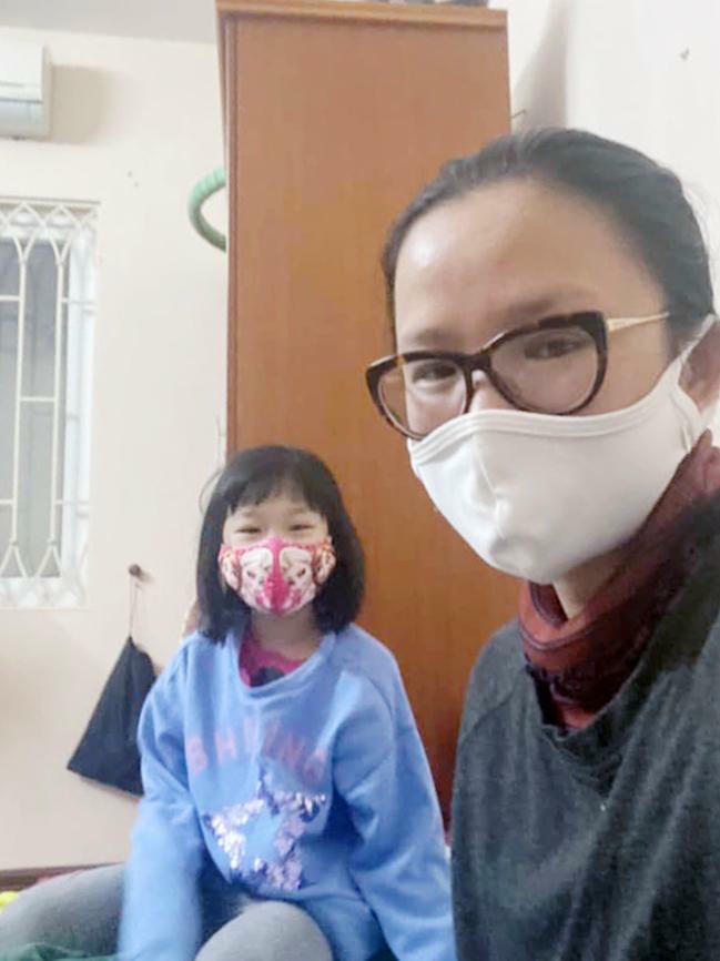 Chị Hiền cùng con gái thứ hai là F0 tự điều trị tại nhà, đầu tháng 2/2022. Ảnh: Nhân vật cung cấp