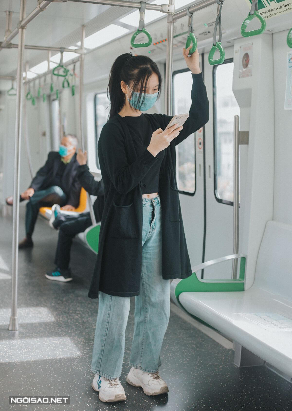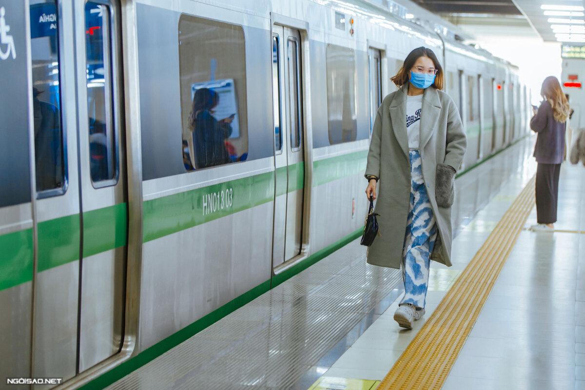 Chụp ảnh cạnh tàu điện là một dáng pose được nhiều bạn trẻ yêu thích. Bạn lưu ý không được bước quá hoặc giẫm lên đường vạch màu vàng. Đường vạch này được đặt để giữ khoảng cách an toàn cho hành khách và tàu khi di chuyển. Trước khi lên tàu, hành khách chú ý về khe hở giữa tàu và đường ray để giữ an toàn cho bản thân.