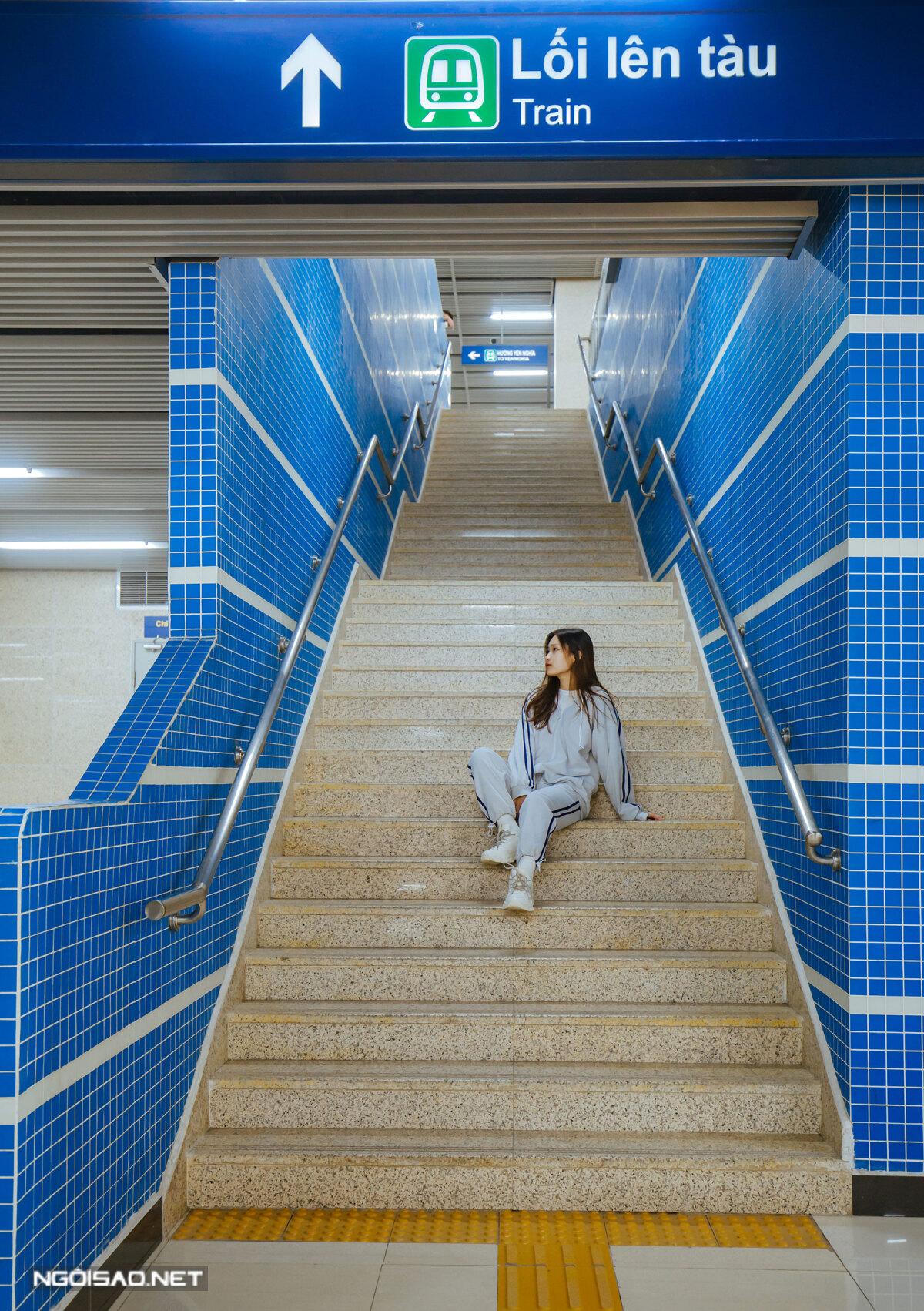 Cầu thang lên xuống của nhà ga Yên Nghĩa thu hút rất nhiều tín đồ đam mê chụp ảnh.