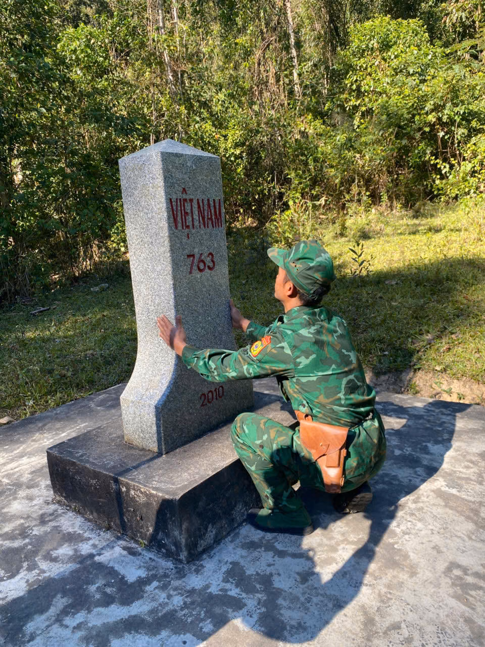 Con đường tuần tra men theo sườn núi, khi lẩn khuất trong rừng già, khi đổ dốc xuống những con suối đá lởm chởm. Sau một hồi băng rừng, cột mốc số 763 hiện ra giữa khoảng trống của đại ngàn.