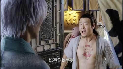 Hình xăm của võ hiệp này có cần phải nữ tính theo phong cách mèo Hello Kitty thế này không nhỉ?