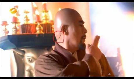 Vị đại sư này trong phim Thiên long bát bộ được đội hóa trang làm quá ẩu đến mức lộ cả vết dán đầu trọc phía sau gáy và bị các “thánh so” phát hiện ngay tắp lự.