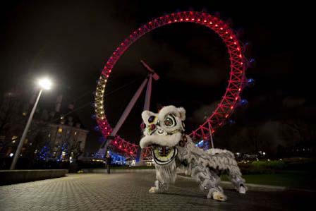 Vòng đu quay khổng lồ “Mắt London” tại Anh được trang hoàng màu đỏ nhân dịp năm mới Giáp Ngọ.
