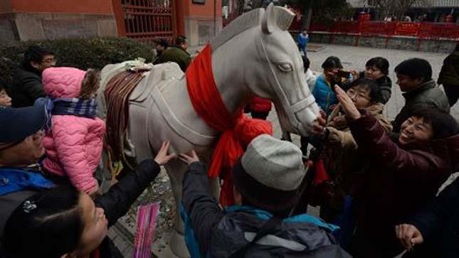 Người đi lễ tại đền Dongyue, Bắc Kinh đua nhau sờ tượng ngựa đá lấy may ngày mùng 1 Tết.