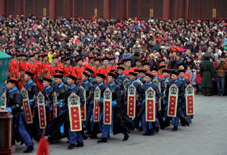 Trung Quốc tái hiện lễ cầu năm mới may mắn của các nhà vua triều Thanh tại Bắc Kinh sáng mùng 1 tết.