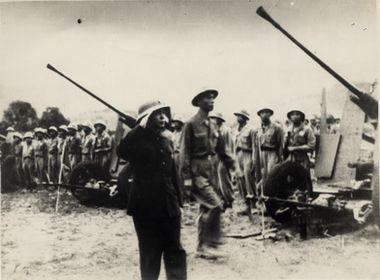 Đại tướng Võ Nguyên Giáp duyệt các đơn vị pháo cao xạchuẩn bị chiến dịch Điện Biên Phủ, năm 1954. Nguồn Trung tâm Lưu trữ quốc gia III, tài liệu ảnh phông Bộ Ngoại giao, SLT 3107 - 2765. |