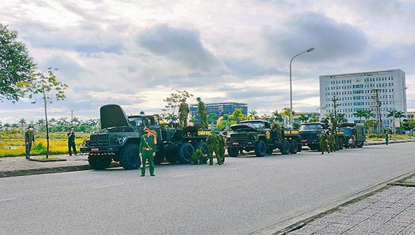 Lc lượng bộ đội hóa học thuộc Quân khu 4 chuẩn bị thực hiện nhiệm vụ khử khuẩn ở các địa bàn liên quan đến ca nhiễm COVID-19 tại TP Hà Tĩnh.