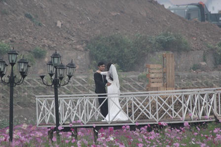 Đôi uyên ương này đã quyết định chọn thung lũng hoa Hồ Tây làm nơi ghi lại những khoảnh khắc đẹp cho album cưới.