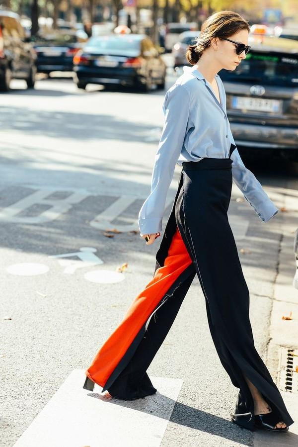 Ngoài chân váy, quần jeans, nàng công sở hãy làm mới phong cách với quần ống rộng. Kiểu quần này hợp với mọi dáng người và che khuyết điểm chân to cho bạn.