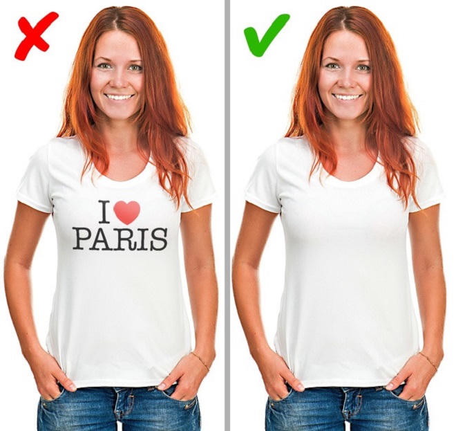 Quần áo không phù hợp với dáng người: Quần áo nên che giấu khuyết điểm của cơ thể, không nên làm lộ chúng ra. Những chiếc váy ngắn có thể là món đồ thời trang tối ưu, nhưng nếu không phù hợp với vóc dáng, chúng khiến bạn bị lúng túng. Quy tắc tương tự cũng áp dụng cho những món đồ không vừa với kích thước cơ thể.