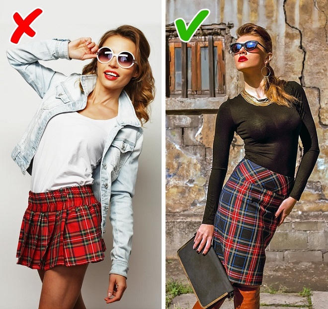 Quần áo không phù hợp độ tuổi: Những chiếc áo họa tiết khiêu khích và chân váy phồng không thể khiến phụ nữ trưởng thành trông đẹp và thanh lịch. Cũng như vậy, cô gái 16 tuổi không thể diện váy nhung với cổ xẻ sâu.
