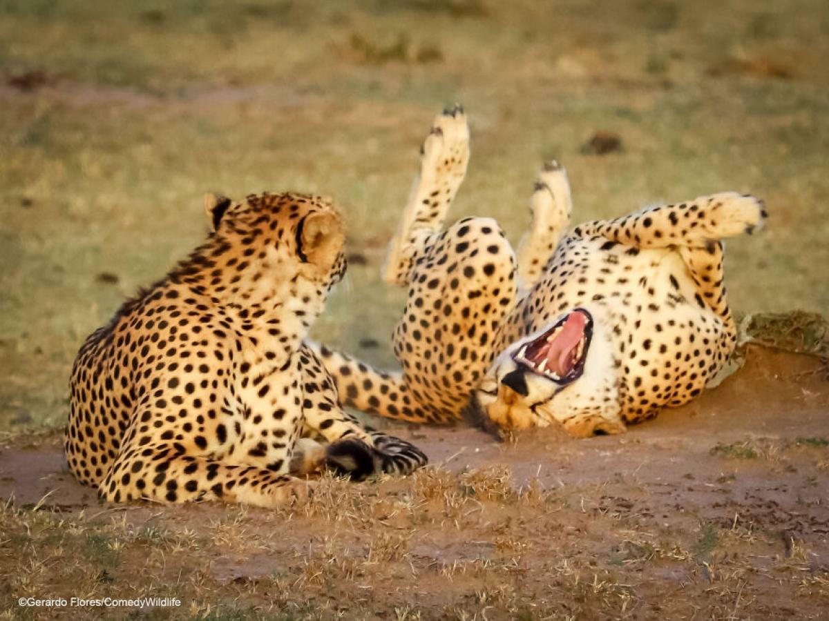 Hai chú báo ở Masaai Mara, Kenya này dường như đang trò chuyện rất vui vẻ dưới ánh hoàng hôn. "Khi một trong hai chú báo bắt đầu lăn tròn trên mặt đất, tôi đã lấy máy ảnh ra chụp và kết quả là một bức ảnh với nụ cười đáng yêu của chú báo trên", nhiếp ảnh gia Gerardo Flores chia sẻ.