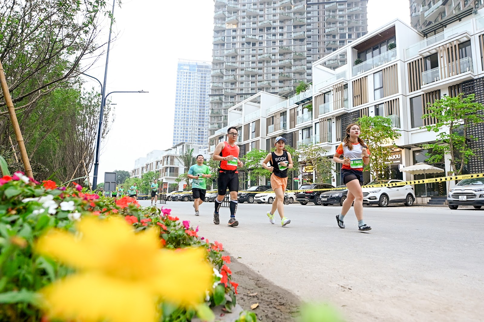 Diễn ra từ 5h, giải Ecopark Marathon một lần nữa ghi dấu ấn trong lòng những người yêu chạy về một cung đường thiên nhiên ấn tượng. Dọc bên hai đường đua là hàng trăm nghìn cây xanh, toả bóng mát. Không khí trong lành và một nền nhiệt dễ chịu như nâng bước chân của 4.000 VĐV.