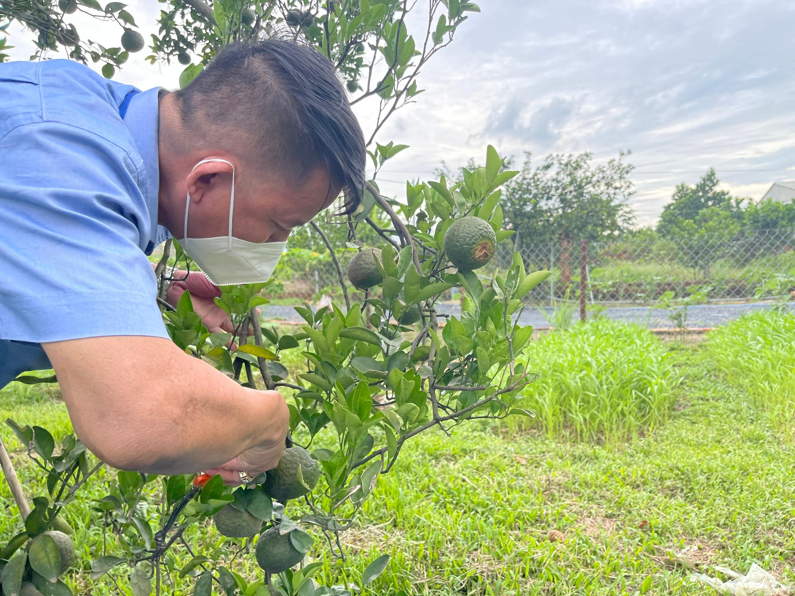 Không phụ công người bao ngày chăm sóc, những quả cam, trái bưởi căng mọng trĩu cành cổ vũ cho anh Trung có thêm động lực để lướt qua nhanh những ngày giãn cách |