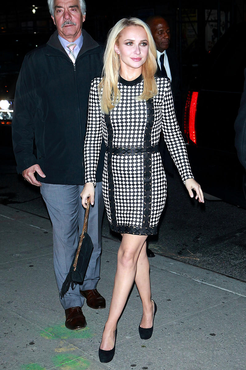 Bộ váy kiểu dáng mini-dress họa tiết caro tay dài của người đẹp Hayden Panettiere được cho là kiểu thời trang không bao giờ bị lỗi mốt trong mùa thu đông.