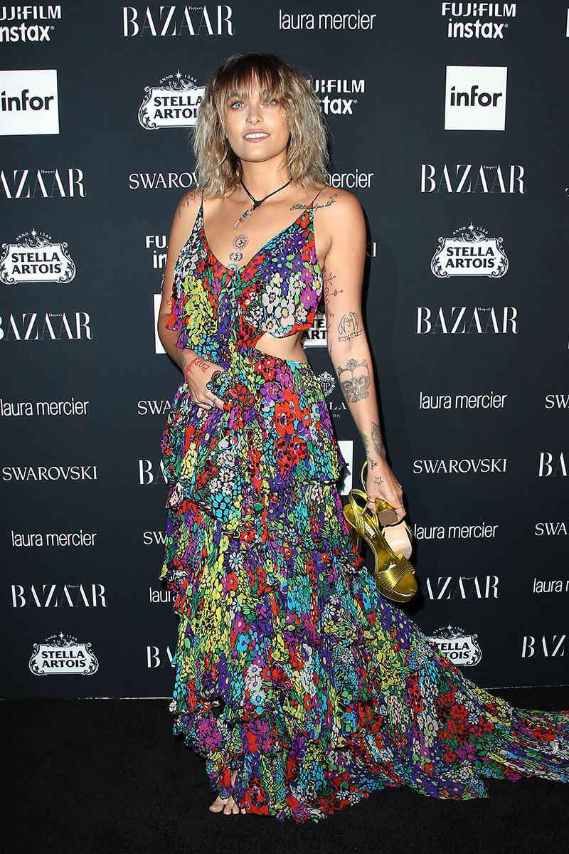 Bộ váy hoa rực rỡ pha trộn giữa nét phóng khoáng và nhẹ nhàng, nữ tính Paris Jackson trở nên nổi bật trên thảm đỏ sự kiện thời trang của tạp chí Harper Bazaar.