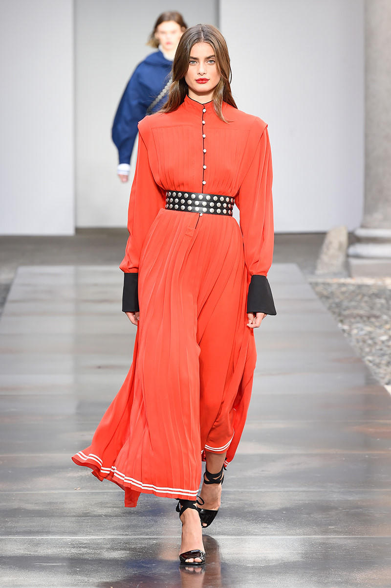 Màu đỏ cam là một trong những gam màu đại diện cho mùa thu. Đỏ cam thể hiện vẻ đẹp tự tin, quyến rũ. Tông màu nổi bật này được sử dụng nhiều ở tuần lễ thời trang Milan vừa qua.